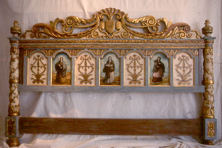 Years ago I painted some guest room beds for a Texas Tycoon, one of the Bass clan. The designer had some elaborately carved Spanish colonial style beds delivered to my studio and I think they must have asked for some figures. I can't imagine why I would have painted them otherwise but I think the beds turned our nicely, especially for a guest room. Don't you think? Would you sleep in it? I used Pontormo as my inspiration.